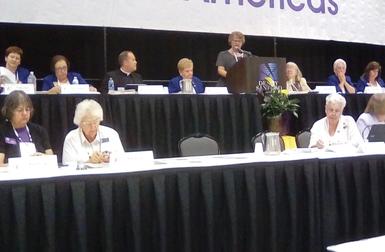 Diane Meore, Secretary to Helene Shepard, National Regent, assisting Laurel Ann Dukart, ND State Regent, signing as alternate to Nominating Committee.